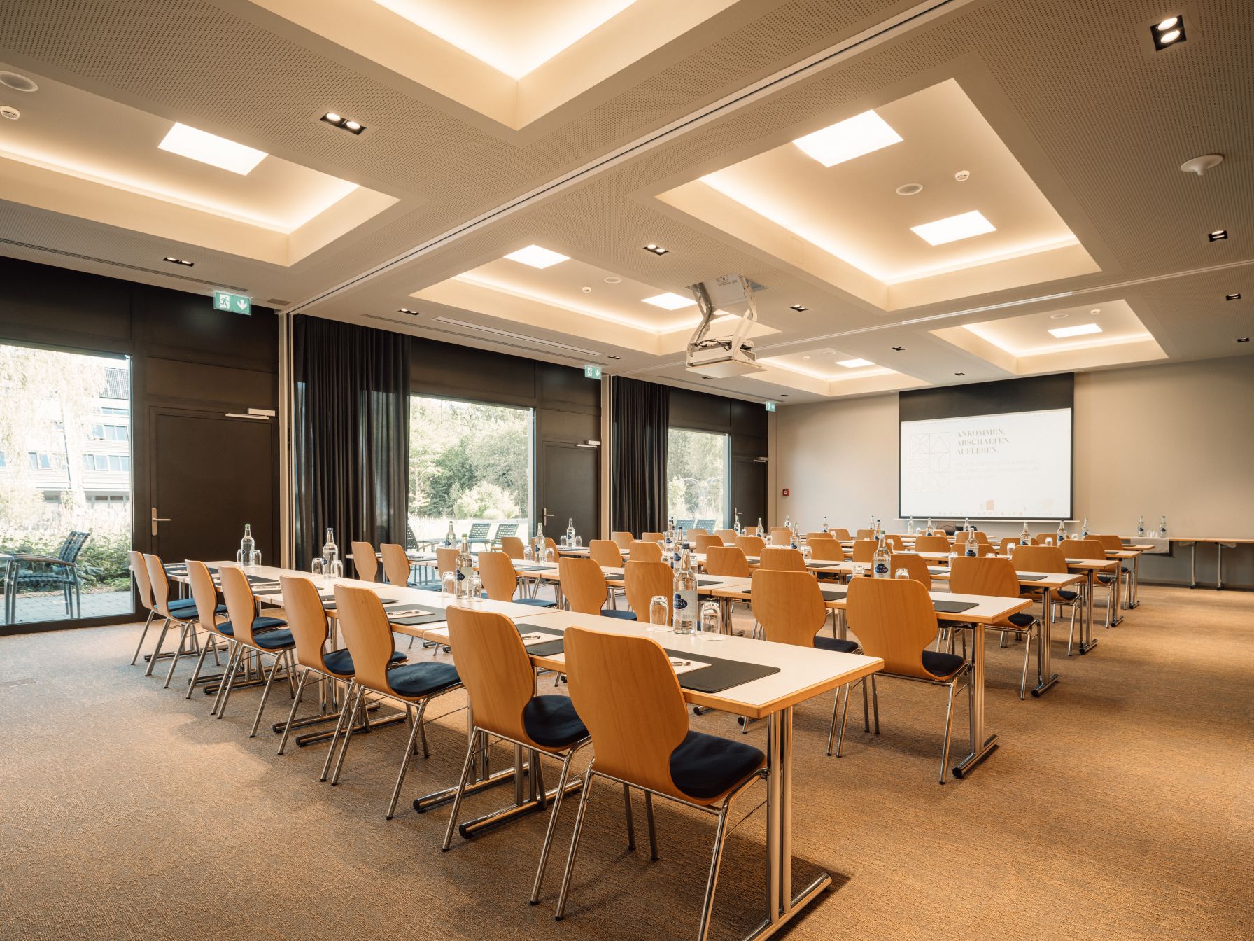 Helle, flexibel kombinierbare Räume mit direktem Zugang zum Seminargarten schaffen den idealen Rahmen für konzentriertes Arbeiten und kreativen Austausch. Tageslicht, moderne Ausstattung und Naturbezug fördern Inspiration und Produktivität.