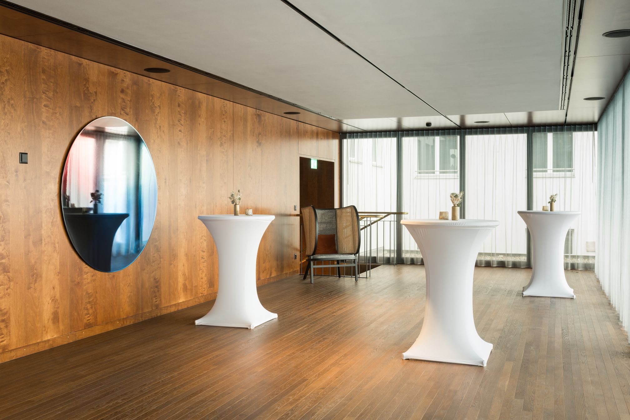 Der Raum Attika eignet sich für kleine Sitzungen oder Workshops in ruhiger Umgebung. Die Lage im oberen Bereich des Hauses sorgt für Abstand und Übersicht.