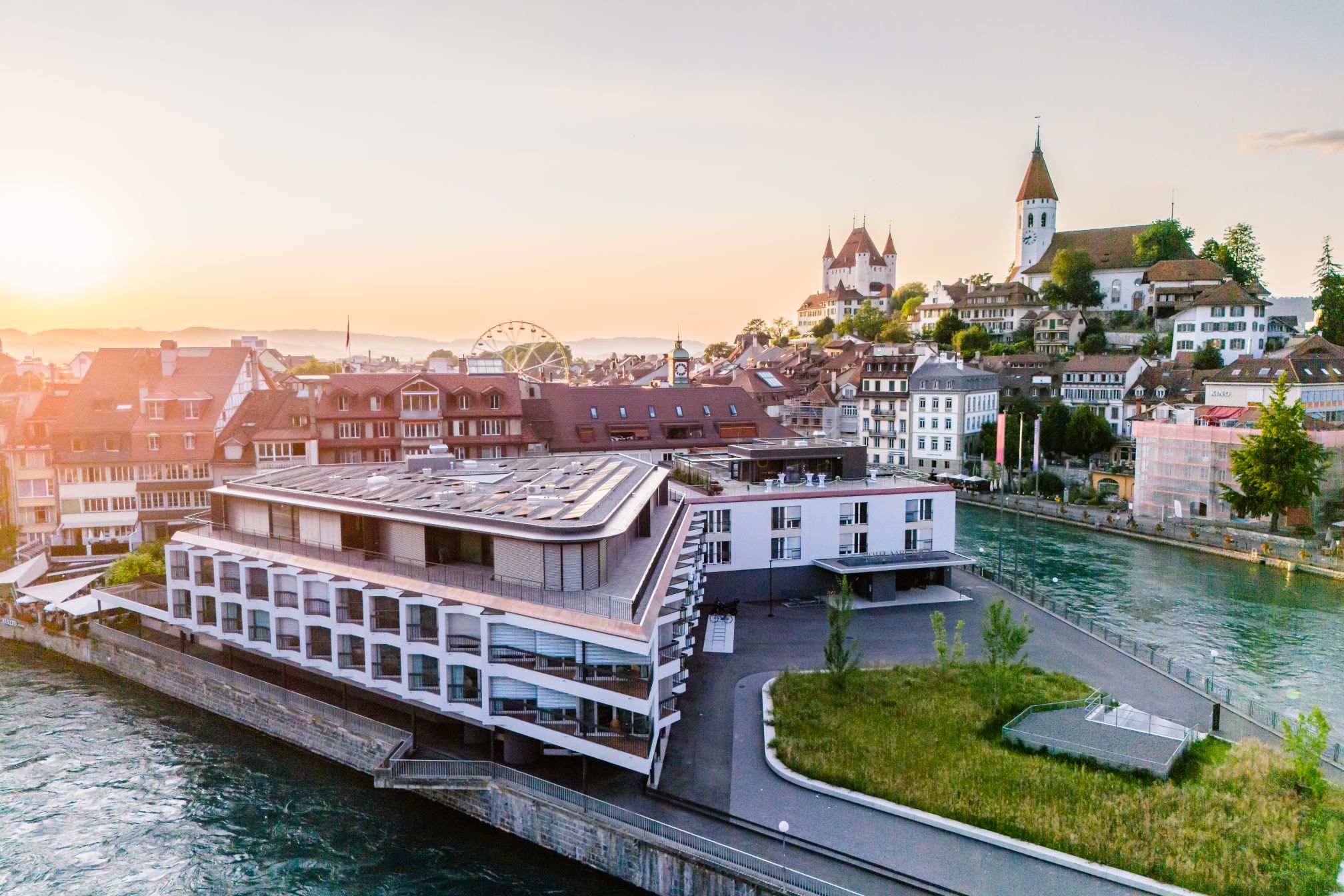 60 moderne Zimmer im nautischen Stil bieten Rückzug mitten in Thun. Auf der Terrasse direkt an der Aare wechseln Teams nach dem Seminartag in den Abendmodus. Für Rahmenprogramme stehen Partner bereit, etwa Stadtführungen oder Yoga. Saisonale Formate wie das Fondue-Stübli auf der Dachterrasse ergänzen den Aufenthalt.