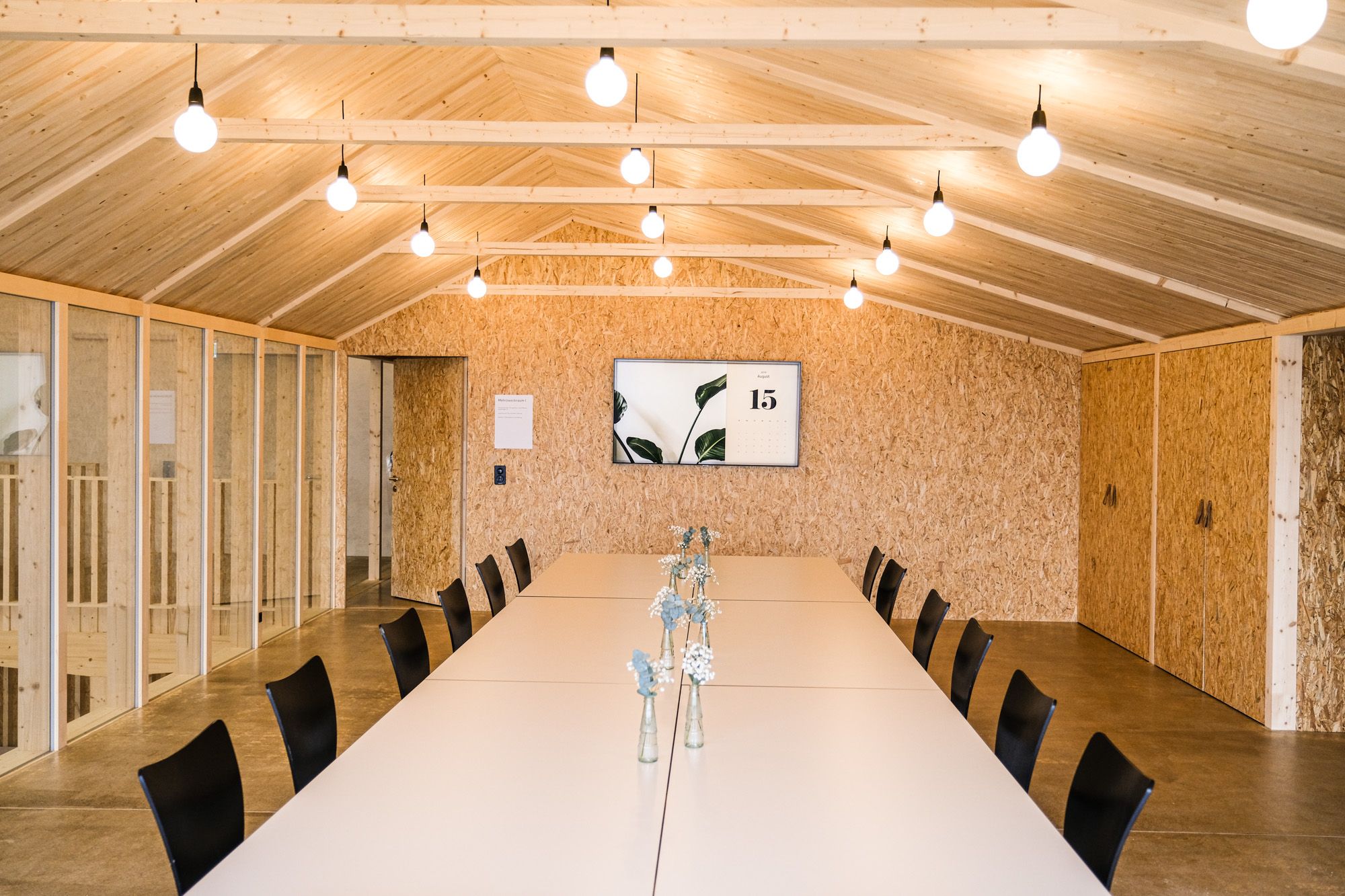 Vom grosszügigen Eventsaal bis zu kleineren, separaten Bereichen lassen sich Veranstaltungen flexibel gestalten. Die industrielle Architektur, kombiniert mit warmen Holzelementen, schafft eine Atmosphäre, die sowohl grossen Anlässen als auch persönlichen Begegnungen Raum gibt.