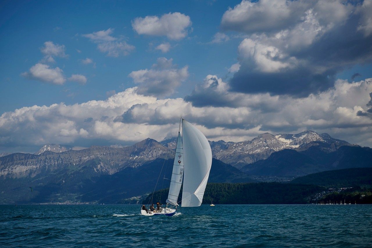The meeting point is one of the locations of the Lake Thun Sailing School, e.g. in Hilterfingen or Spiez. After a short introduction and safety briefing, the groups are allocated to the boats.